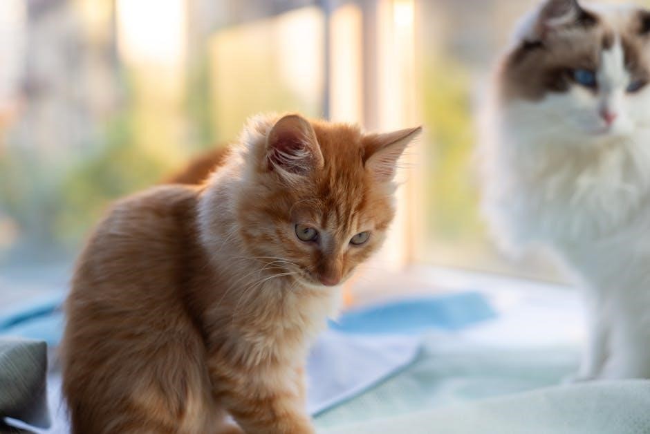 To set the feeding schedule, use the control panel to select the desired feeding times (up to 6 meals daily). Choose the portion size for each meal using the corresponding buttons. Press the “Set” button to confirm. The feeder will automatically dispense food at the programmed times. Refer to the user manual for step-by-step guidance. Ensure the schedule aligns with your cat’s routine for consistent feeding.